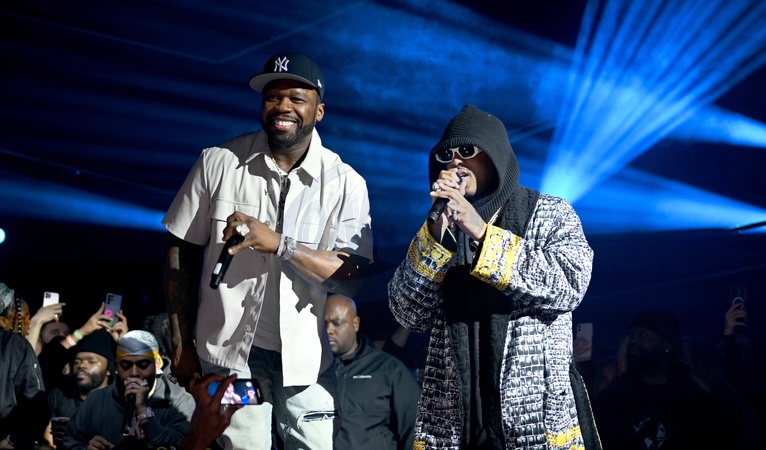 50 Cent and Jeremih preforming at the FLIPPER'S ROLLER BOOGIE PALACE london afterparty for its first birthday, 11 november 2023, Credit:celebrityphotos uk / Avalon