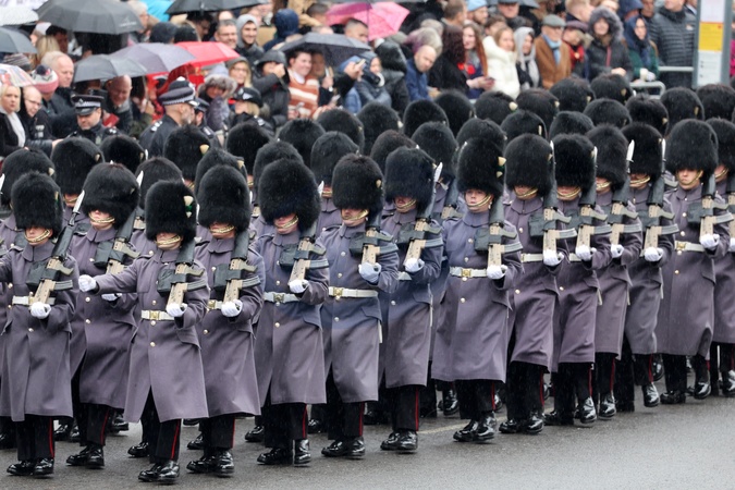 LONDON, ENGLAND - NOVEMBER 12: Soldiers march during the National Service of Remembrance at The Cenotaph on November 12, 2023 in London, England. Every year, members of the British Royal family join politicians, veterans and members of the public to remember those who have died in combat., Credit:Chris Jackson / Avalon
