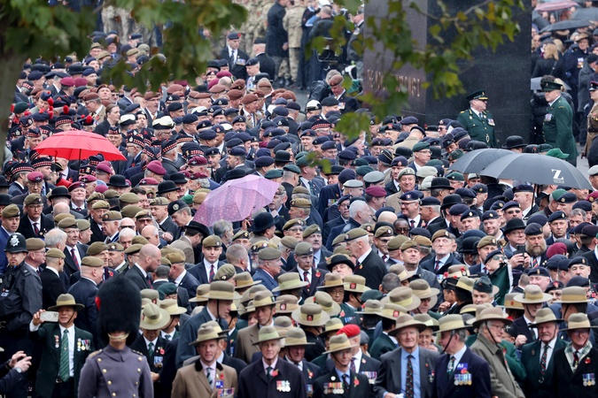 LONDON, ENGLAND - NOVEMBER 12: General view of the veteran parade during the National Service of Remembrance at The Cenotaph on November 12, 2023 in London, England. Every year, members of the British Royal family join politicians, veterans and members of the public to remember those who have died in combat., Credit:Chris Jackson / Avalon