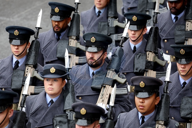 LONDON, ENGLAND - NOVEMBER 12: Soldiers march during the National Service of Remembrance at The Cenotaph on November 12, 2023 in London, England. Every year, members of the British Royal family join politicians, veterans and members of the public to remember those who have died in combat., Credit:Chris Jackson / Avalon