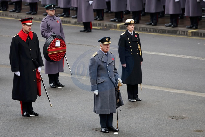 LONDON, ENGLAND - NOVEMBER 12: Prince William, Prince of Wales, King Charles III and Princess Anne, Princess Royal during the National Service of Remembrance at The Cenotaph on November 12, 2023 in London, England. Every year, members of the British Royal family join politicians, veterans and members of the public to remember those who have died in combat., Credit:Chris Jackson / Avalon