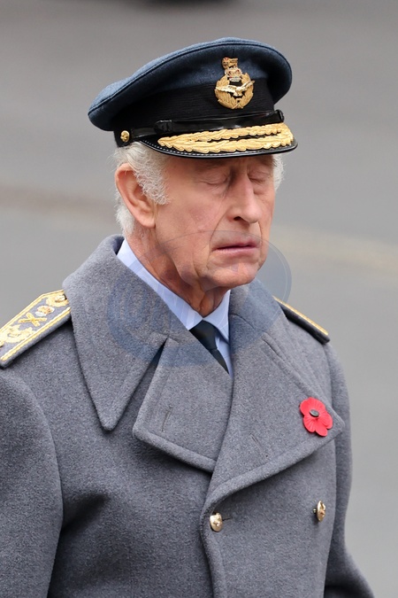 LONDON, ENGLAND - NOVEMBER 12: King Charles III during the National Service of Remembrance at The Cenotaph on November 12, 2023 in London, England. Every year, members of the British Royal family join politicians, veterans and members of the public to remember those who have died in combat., Credit:Chris Jackson / Avalon
