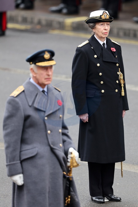LONDON, ENGLAND - NOVEMBER 12: King Charles III and Princess Anne, Princess Royal during the National Service of Remembrance at The Cenotaph on November 12, 2023 in London, England. Every year, members of the British Royal family join politicians, veterans and members of the public to remember those who have died in combat., Credit:Chris Jackson / Avalon