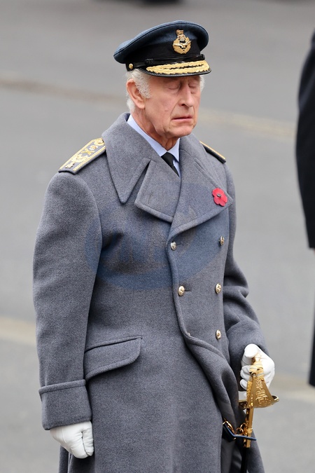 LONDON, ENGLAND - NOVEMBER 12: King Charles III during the National Service of Remembrance at The Cenotaph on November 12, 2023 in London, England. Every year, members of the British Royal family join politicians, veterans and members of the public to remember those who have died in combat., Credit:Chris Jackson / Avalon