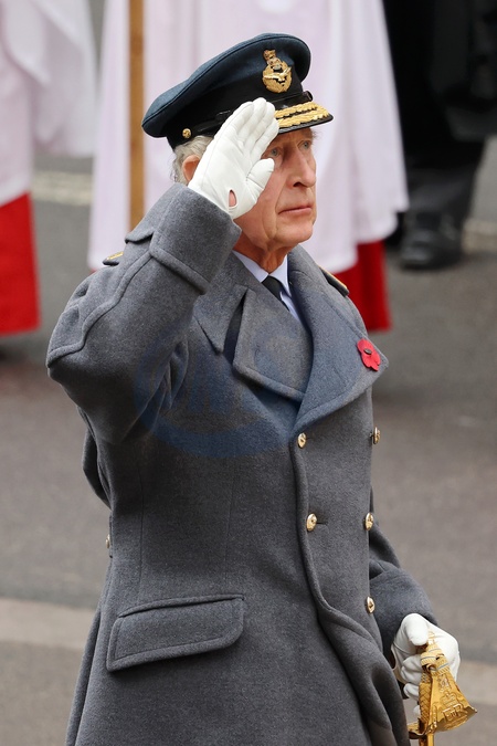 LONDON, ENGLAND - NOVEMBER 12: King Charles III during the National Service of Remembrance at The Cenotaph on November 12, 2023 in London, England. Every year, members of the British Royal family join politicians, veterans and members of the public to remember those who have died in combat., Credit:Chris Jackson / Avalon