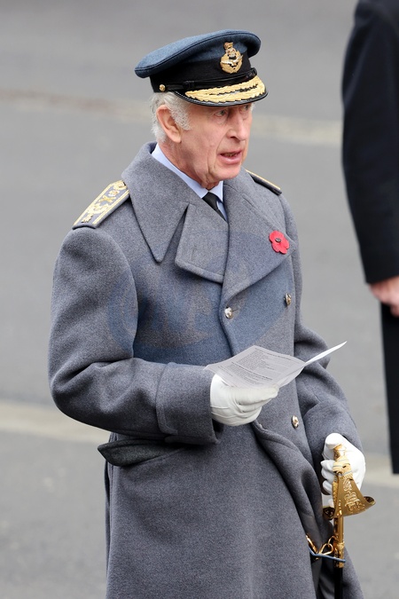 LONDON, ENGLAND - NOVEMBER 12: King Charles III during the National Service of Remembrance at The Cenotaph on November 12, 2023 in London, England. Every year, members of the British Royal family join politicians, veterans and members of the public to remember those who have died in combat., Credit:Chris Jackson / Avalon