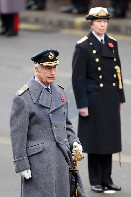 LONDON, ENGLAND - NOVEMBER 12: King Charles III and Princess Anne, Princess Royal during the National Service of Remembrance at The Cenotaph on November 12, 2023 in London, England. Every year, members of the British Royal family join politicians, veterans and members of the public to remember those who have died in combat., Credit:Chris Jackson / Avalon