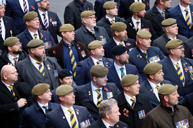 LONDON, ENGLAND - NOVEMBER 12: General view of the veteran parade during the National Service of Remembrance at The Cenotaph on November 12, 2023 in London, England. Every year, members of the British Royal family join politicians, veterans and members of the public to remember those who have died in combat., Credit:Chris Jackson / Avalon