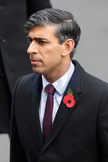 LONDON, ENGLAND - NOVEMBER 12: Prime Minister Rishi Sunak during the National Service of Remembrance at The Cenotaph on November 12, 2023 in London, England. Every year, members of the British Royal family join politicians, veterans and members of the public to remember those who have died in combat., Credit:Chris Jackson / Avalon
