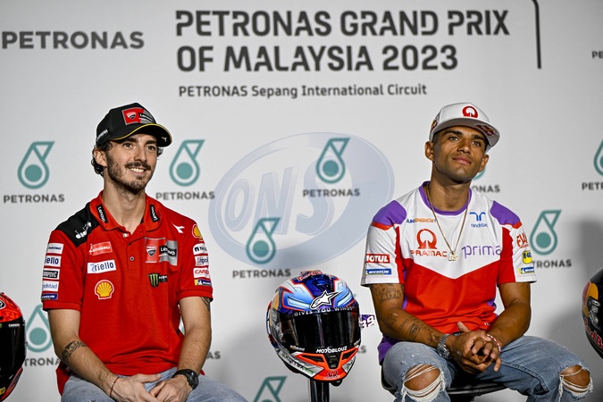 BAGNAIA Francesco (ita), Ducati Lenovo Team, Ducati Desmosedici GP23, portrait with MARTIN Jorge (spa), Pramac Racing, Ducati Desmosedici GP23, press conference during the 2023 MotoGP Petronas Grand Prix of Malaysia on the Sepang International Circuit from November 10 to 12, in Sepang, Malaysia - © DPPI/Panoramic/Bestimage