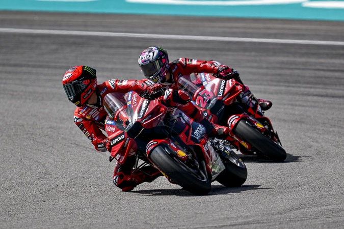 01 BAGNAIA Francesco (ita), Ducati Lenovo Team, Ducati Desmosedici GP23, action with 23 BASTIANINI Enea (ita), Ducati Lenovo Team, Ducati Desmosedici GP23 during the 2023 MotoGP Petronas Grand Prix of Malaysia on the Sepang International Circuit from November 10 to 12, in Sepang, Malaysia - © DPPI/Panoramic/Bestimage