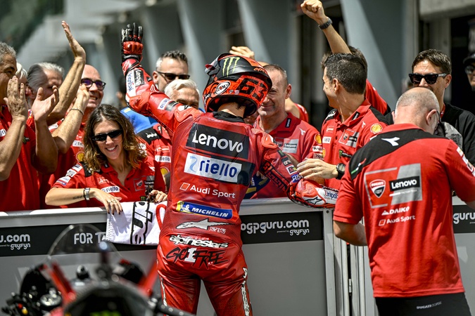 BAGNAIA Francesco (ita), Ducati Lenovo Team, Ducati Desmosedici GP23, portrait, celebrating his pole-position during the 2023 MotoGP Petronas Grand Prix of Malaysia on the Sepang International Circuit from November 10 to 12, in Sepang, Malaysia - © DPPI/Panoramic/Bestimage