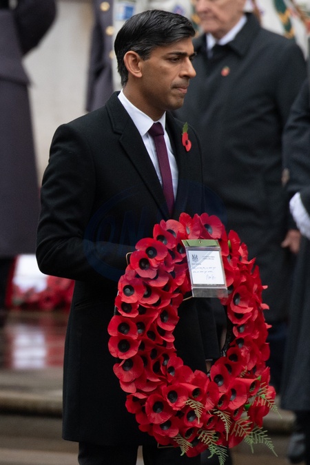British Prime Minister Rishi Sunak at the Remembrance Sunday Service in Whitehall - Whitehall, London, England, UK on Sunday 12 November, 2023 to commemorate the contribution of British and Commonwealth military and civilian servicemen and women in the two World Wars and later conflict., Credit:Justin Ng / Avalon