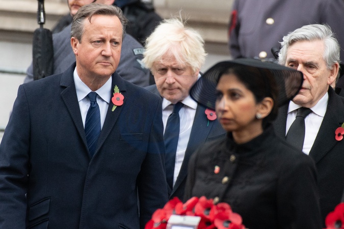 (L-R) - Former Prime Minister David Cameron, Former Prime Minister Boris Johnson at the Remembrance Sunday Service in Whitehall - Whitehall, London, England, UK on Sunday 12 November, 2023 to commemorate the contribution of British and Commonwealth military and civilian servicemen and women in the two World Wars and later conflict., Credit:Justin Ng / Avalon