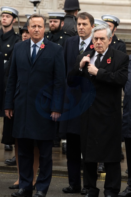 (L-R) - Former Prime Minister David Cameron, Former Prime Minister Gordon Brown at the Remembrance Sunday Service in Whitehall - Whitehall, London, England, UK on Sunday 12 November, 2023 to commemorate the contribution of British and Commonwealth military and civilian servicemen and women in the two World Wars and later conflict., Credit:Justin Ng / Avalon