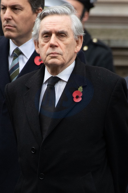 Former Prime Minister Gordon Brown at the Remembrance Sunday Service in Whitehall - Whitehall, London, England, UK on Sunday 12 November, 2023 to commemorate the contribution of British and Commonwealth military and civilian servicemen and women in the two World Wars and later conflict., Credit:Justin Ng / Avalon