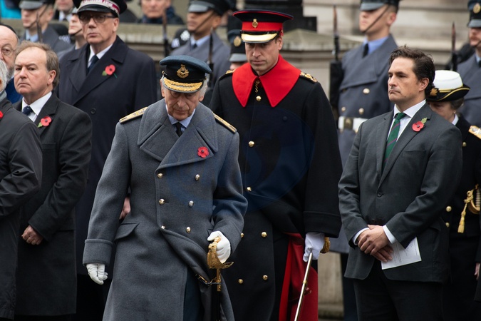 King Charles III, Prince William - The Prince of Wales at the Remembrance Sunday Service in Whitehall - Whitehall, London, England, UK on Sunday 12 November, 2023 to commemorate the contribution of British and Commonwealth military and civilian servicemen and women in the two World Wars and later conflict., Credit:Justin Ng / Avalon