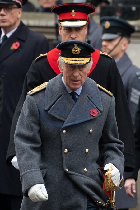 King Charles III, Prince William - The Prince of Wales at the Remembrance Sunday Service in Whitehall - Whitehall, London, England, UK on Sunday 12 November, 2023 to commemorate the contribution of British and Commonwealth military and civilian servicemen and women in the two World Wars and later conflict., Credit:Justin Ng / Avalon