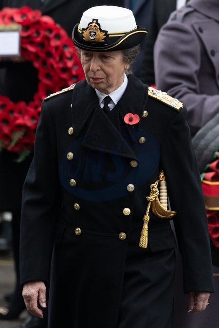 Princess Anne - The Princess Royal at the Remembrance Sunday Service in Whitehall - Whitehall, London, England, UK on Sunday 12 November, 2023 to commemorate the contribution of British and Commonwealth military and civilian servicemen and women in the two World Wars and later conflict., Credit:Justin Ng / Avalon
