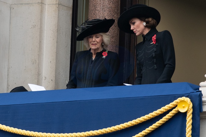 (L-R) - Queen Camilla, Princess Catherine - The Princess of Wales at the Remembrance Sunday Service in Whitehall - Whitehall, London, England, UK on Sunday 12 November, 2023 to commemorate the contribution of British and Commonwealth military and civilian servicemen and women in the two World Wars and later conflict., Credit:Justin Ng / Avalon