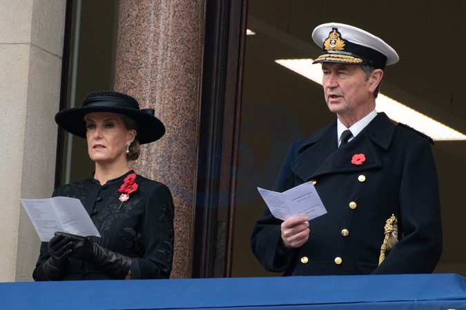 (L-R) - Sophie, Duchess of Edinburgh, Vice Admiral Sir Timothy Laurence at the Remembrance Sunday Service in Whitehall - Whitehall, London, England, UK on Sunday 12 November, 2023 to commemorate the contribution of British and Commonwealth military and civilian servicemen and women in the two World Wars and later conflict., Credit:Justin Ng / Avalon