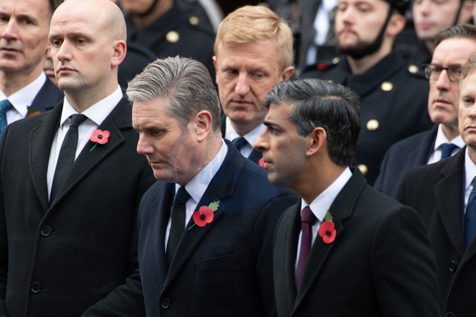 Labour Leader Sir Keir Starmer, British Prime Minister Rishi Sunak at the Remembrance Sunday Service in Whitehall - Whitehall, London, England, UK on Sunday 12 November, 2023 to commemorate the contribution of British and Commonwealth military and civilian servicemen and women in the two World Wars and later conflict., Credit:Justin Ng / Avalon