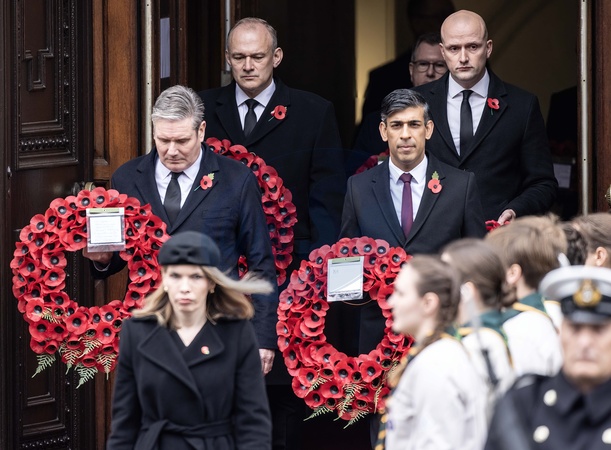 Prime Minister Rishi Sunak walks with leader of the opposition Keir Starmer as they prepare to lay their wreaths at the Cenotaph on Remembrance Sunday., Credit:Richard Pohle / Avalon