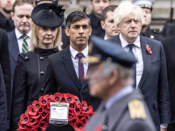 Prime Minister Rishi Sunak stands looking at The King during the Remembrance Sunday ceremony at the Cenotaph in London., Credit:Richard Pohle / Avalon