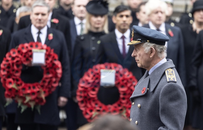 The King stands before the Cenotaph on Remembrance Sunday., Credit:Richard Pohle / Avalon