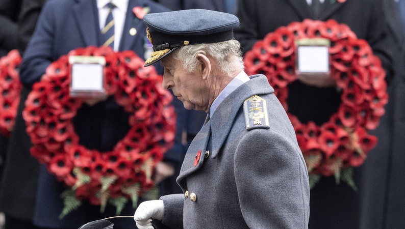 The King stands before the Cenotaph on Remembrance Sunday., Credit:Richard Pohle / Avalon