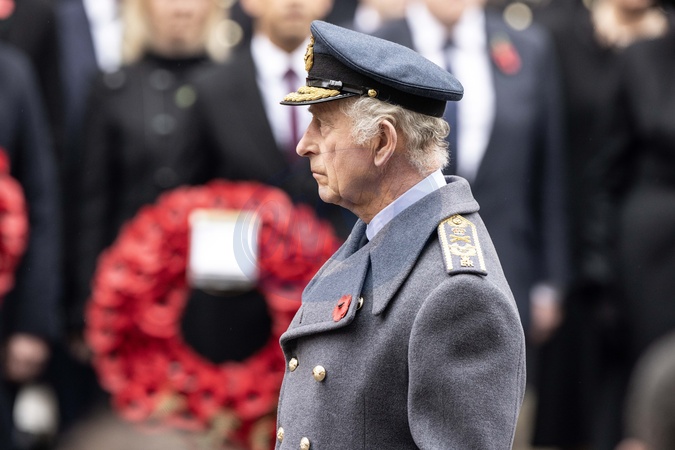The King stands before the Cenotaph on Remembrance Sunday., Credit:Richard Pohle / Avalon