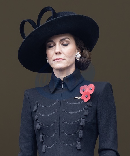 The Princess of Wales stands in the royal box overlooking the Cenotaph on Remembrance Sunday., Credit:Richard Pohle / Avalon