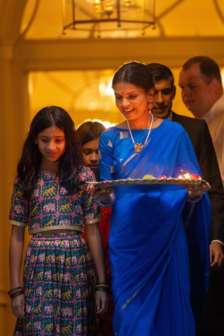 Rishi Sunak z zona zapala Diya swieczki na swieto Diwali