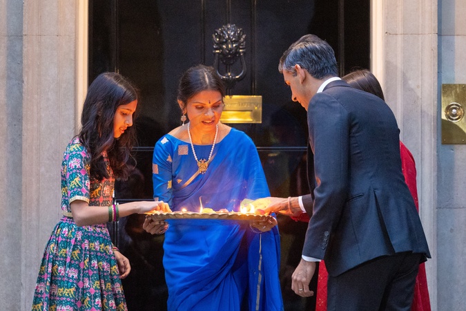 Rishi Sunak z zona zapala Diya swieczki na swieto Diwali