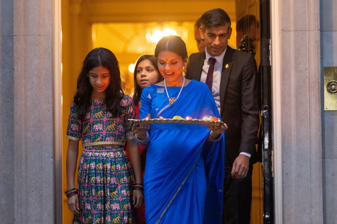 Rishi Sunak z zona zapala Diya swieczki na swieto Diwali