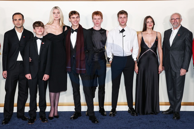 WESTWOOD, LOS ANGELES, CALIFORNIA, USA - NOVEMBER 12: Khalid Abdalla, Fflyn Edwards, Elizabeth Debicki, Rufus Kampa, Luther Ford, Ed McVey, Meg Bellamy and Jonathan Pryce arrive at the Los Angeles Premiere Of Netflix's 'The Crown' Season 6 Part 1 held at the Regency Village Theatre on November 12, 2023 in Westwood, Los Angeles, California, United States., Credit:Xavier Collin / Avalon