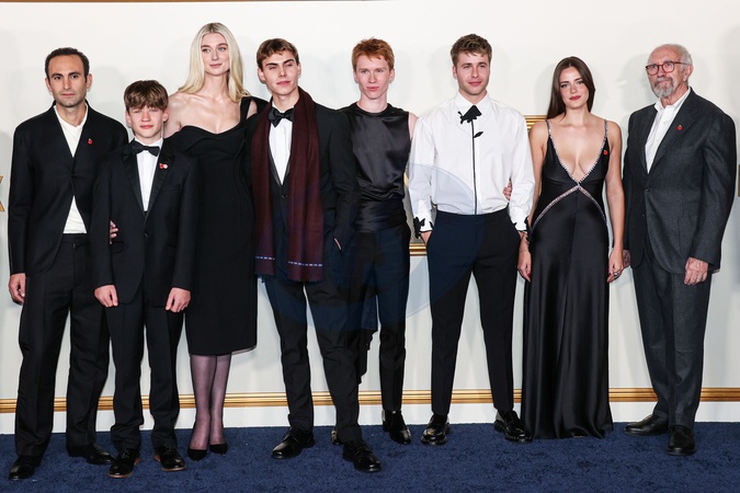 WESTWOOD, LOS ANGELES, CALIFORNIA, USA - NOVEMBER 12: Khalid Abdalla, Fflyn Edwards, Elizabeth Debicki, Rufus Kampa, Luther Ford, Ed McVey, Meg Bellamy and Jonathan Pryce arrive at the Los Angeles Premiere Of Netflix's 'The Crown' Season 6 Part 1 held at the Regency Village Theatre on November 12, 2023 in Westwood, Los Angeles, California, United States., Credit:Xavier Collin / Avalon