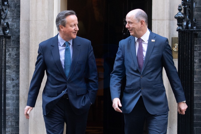 Former Prime Minister David Cameron and now newly appointed Secretary of State for Foreign , Commonwealth and Developmental Affairs departs with Sir Philip Barton - Permanent Under-Secretary at the Foreign, Commonwealth & Development Office at Downing Street in London, England, UK on Monday 13 November, 2023 as part of a cabinet reshuffle., Credit:Justin Ng / Avalon