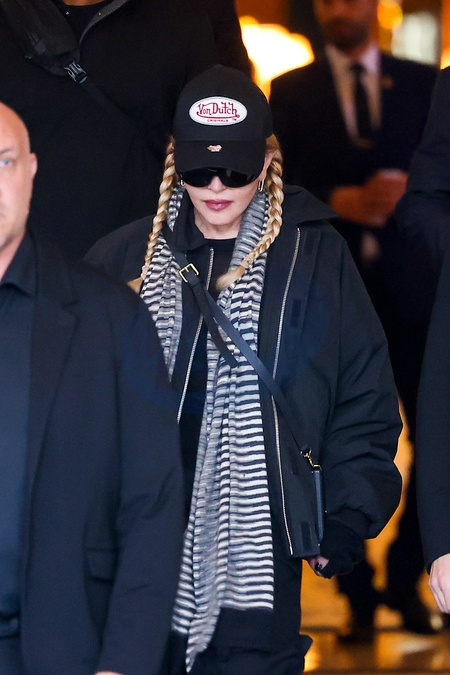 Madonna entourée de ses gardes du corps à la sortie de l'hôtel Ritz à Paris, France, le 13 novembre 2023. L'icône pop est en route pour sa deuxième date parisienne à l'Accor Arena de sa tournée "The Celebration Tour". Madonna surrounded by her bodyguards as she exits the Ritz hotel in Paris, France, on November 13, 2023. The pop icon is on her way to her second Parisian date at the Accor Arena of her "The Celebration Tour" .