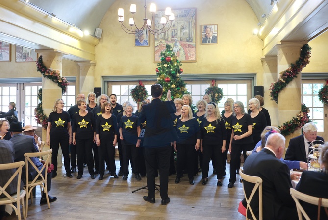 TETBURY, ENGLAND - NOVEMBER 13: The Rock Choir perform during King Charles III's 75th birthday party hosted by the Prince's Foundation at Highgrove House on November 13, 2023 in Tetbury, England. Guests include local residents who have been nominated by friends and family and individuals and organisations also turning 75 in 2023., Credit:Chris Jackson / Avalon