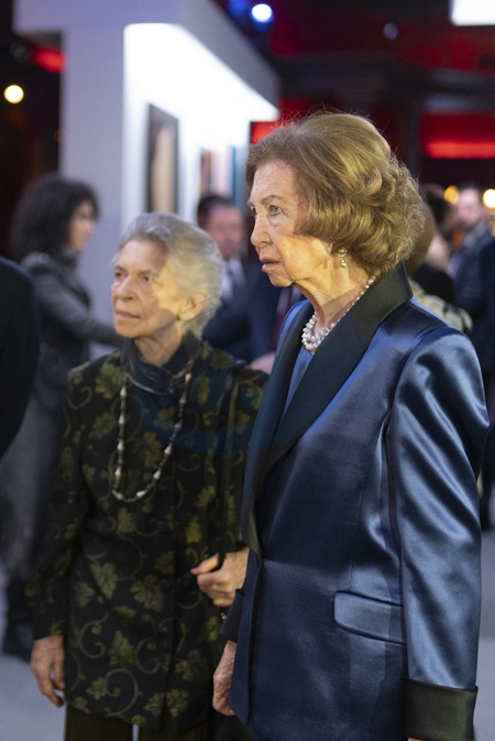 La reine Sofia d'Espagne et sa soeur la princesse Irene de Grèce lors des "BMW Paintings Awards" à Madrid
