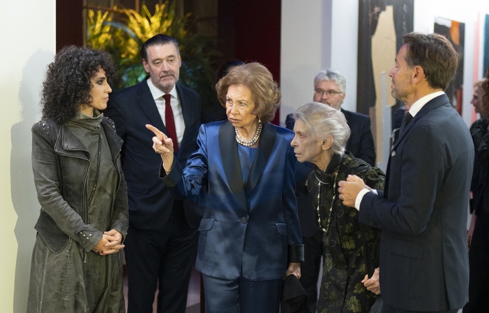 La reine Sofia d'Espagne et sa soeur la princesse Irene de Grèce lors des "BMW Paintings Awards" à Madrid