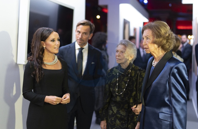 La reine Sofia d'Espagne et sa soeur la princesse Irene de Grèce lors des "BMW Paintings Awards" à Madrid