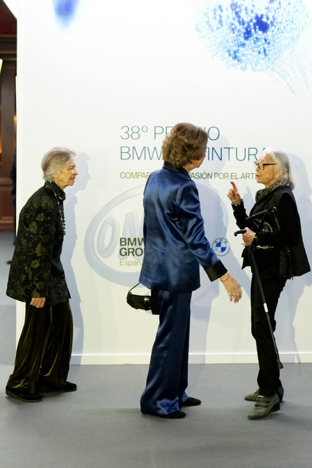 La reine Sofia d'Espagne et sa soeur la princesse Irene de Grèce lors des "BMW Paintings Awards" à Madrid