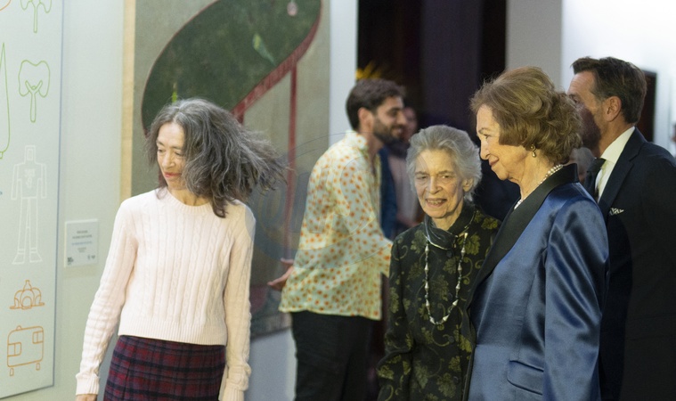 La reine Sofia d'Espagne et sa soeur la princesse Irene de Grèce lors des "BMW Paintings Awards" à Madrid