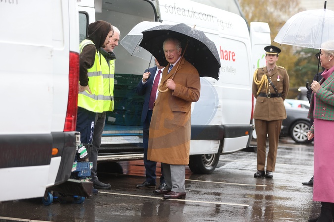 Krol Karol III i krolowa Camilla w magazynach Fare Share Didcot