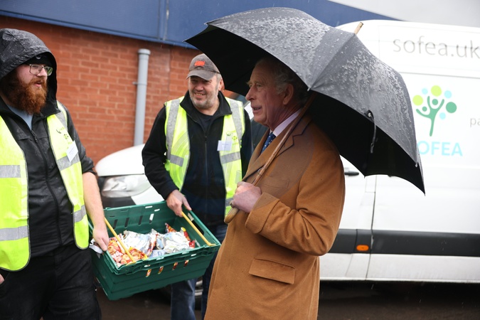Krol Karol III i krolowa Camilla w magazynach Fare Share Didcot