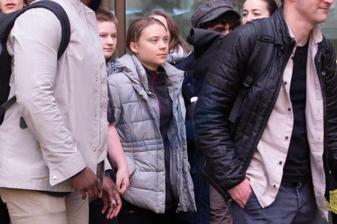 Greta Thunberg opuszcza sąd w Westminster w Londynie