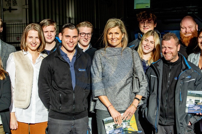 KROLOWA Maxima des Pays-Bas odwiedza firmę „Oomen Storage & Movers” w Katwijk