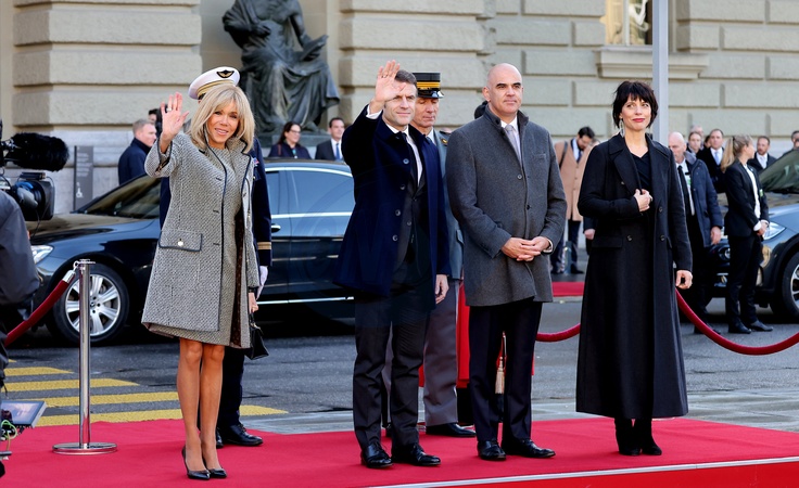 powitanie prezydenta Emmanuela Macrona i Brigitte Macron na Placu Federalnym w Bernie w Szwajcarii